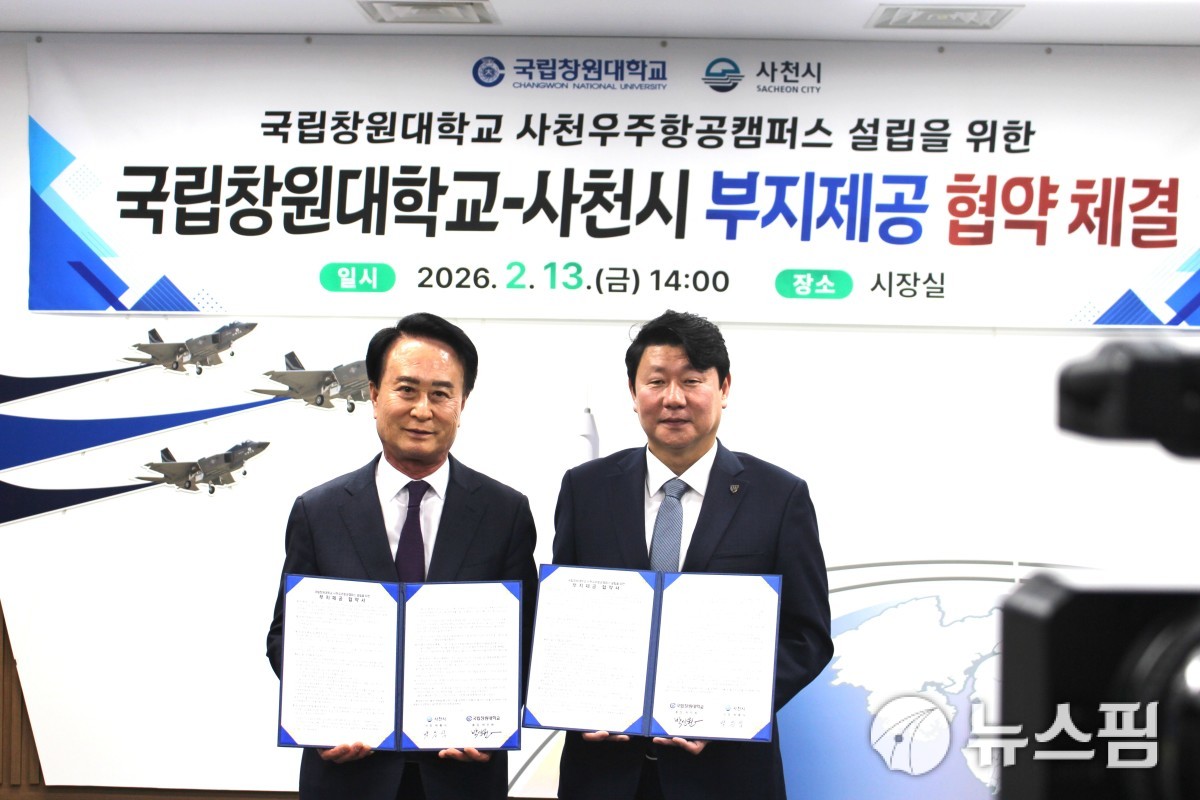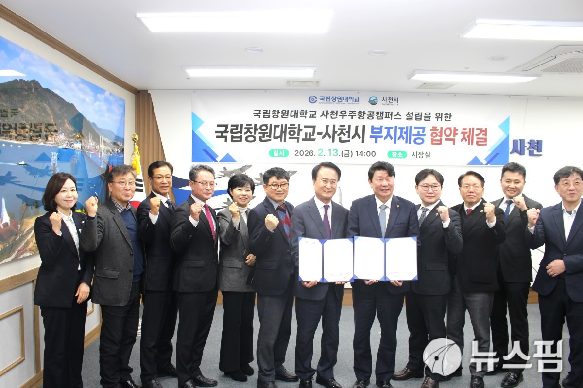 사천시는 13일 시청 열린시장실에서 국립창원대학교와 '사천우주항공캠퍼스 설립 부지제공 협약'을 체결했다고 밝혔다. 이번 협약은 용현면 통양리 일원 4만6797㎡ 부지를 대학 측에 제공해 우주항공 특화교육의 거점을 조성하는 내용을 담았다.