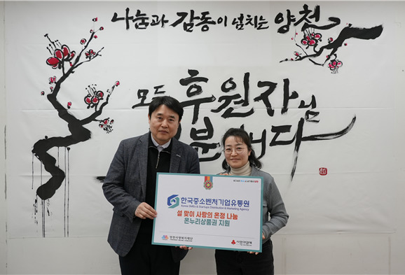 [세종=뉴스핌] 김기랑 기자 = 한국중소벤처기업유통원이 다가오는 설 명절을 맞아 '온누리상품권'을 지역 복지재단에 전달하며 취약계층 지원에 나섰다.