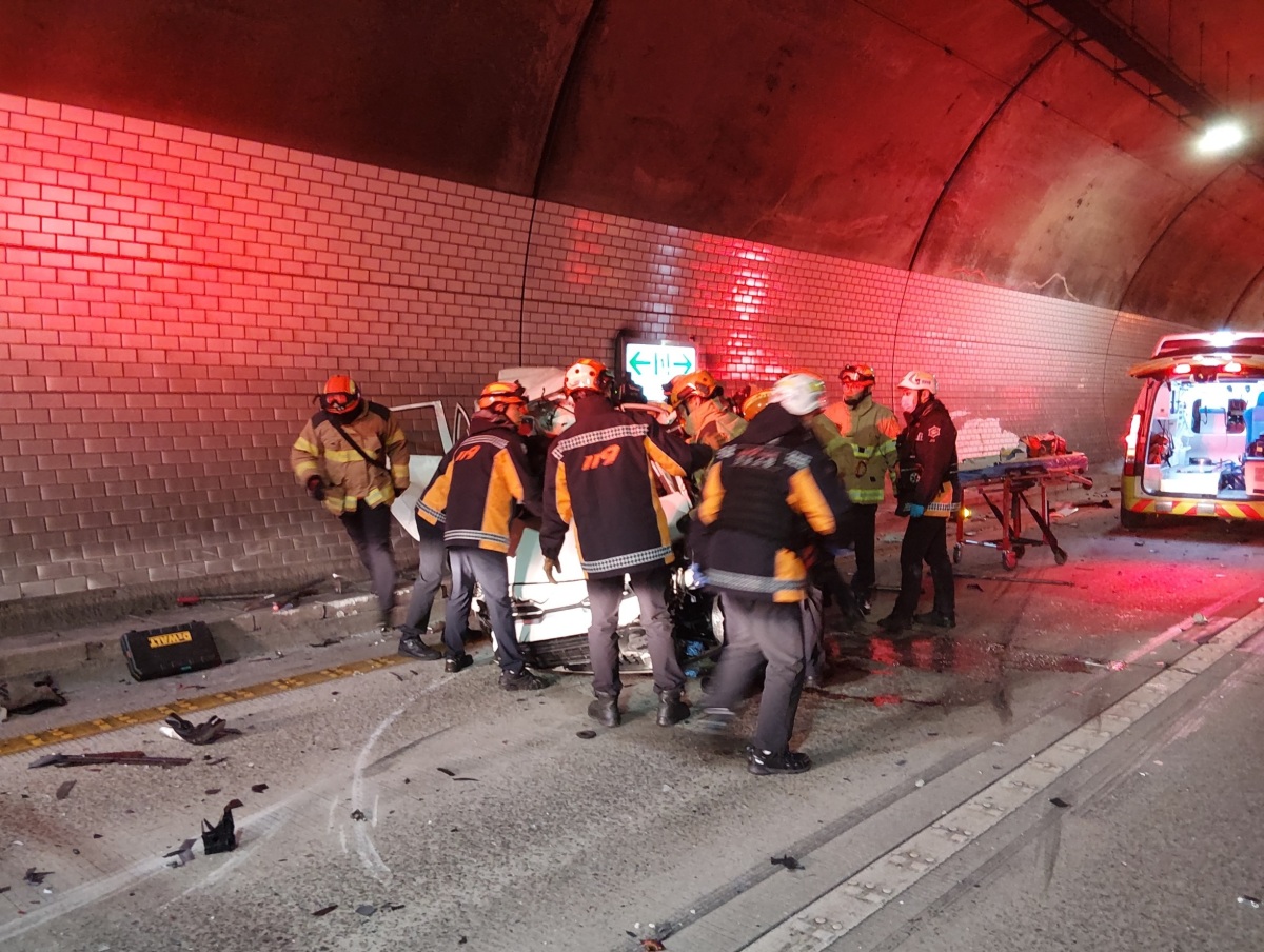 [거제=뉴스핌] 남경문 기자 = 경남 거제시 양정터널에서 차량 2대가 추돌해 1명이 숨지고 1명이 부상했다.