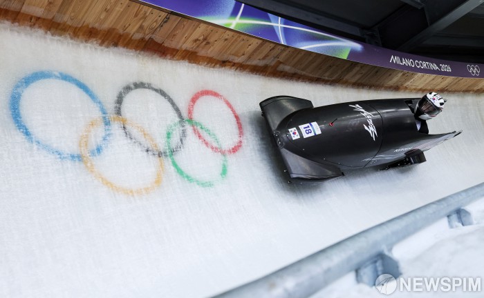 [코르티나담페초=로이터뉴스핌] 밀라노 코르티나 2026 올림픽에 출전한 봅슬레이 모노봅 선수 김유란이 15일 이탈리아 코르티나담페초 코르티나 슬라이딩 센터에서 2차 주행을 하고 있다. 2026.02.15 photo@newspim.com