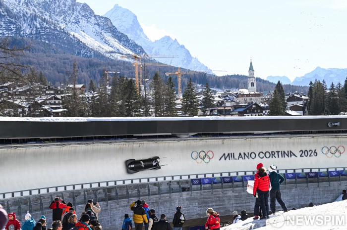 [코르티나담페초=로이터뉴스핌] 밀라노 코르티나 2026 올림픽에 출전한 봅슬레이 모노봅 선수 김유란이 15일 이탈리아 코르티나담페초 코르티나 슬라이딩 센터에서 1차 주행을 하고 있다. 2026.02.15 photo@newspim.com