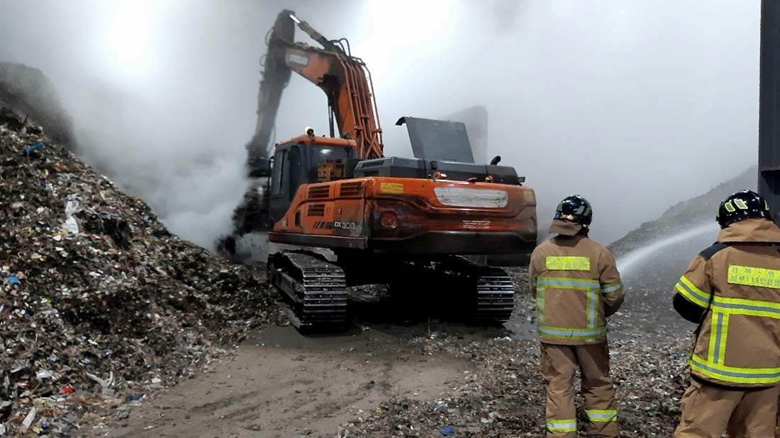 [영천=뉴스핌] 남효선 기자 = 설날인 17일 오전 4시 47분쯤 경북 영천시 도남동의 한 자원순환시설 야적장에서 화재가 발생해 발화 3시간20여 분 만에 진화됐다. 다행히 인명피해는 발생하지 않았다.