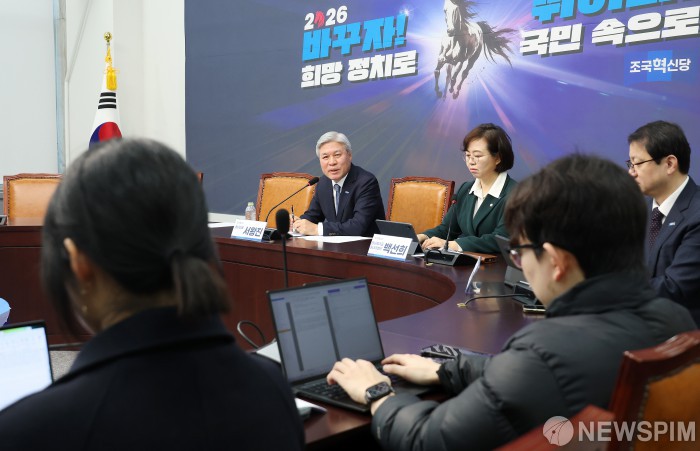 [서울=뉴스핌] 정일구 기자 = 서왕진 조국혁신당 원내대표가 18일 오전 서울 여의도 국회에서 열린 설 민심 기자간담회에서 취재진 질문에 답하고 있다. 2026.02.18 mironj19@newspim.com