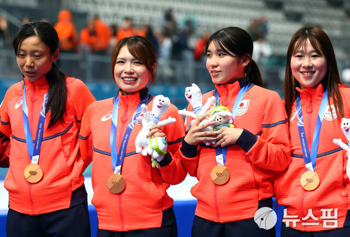 [밀라노 로이터=뉴스핌] 일본이 18일(한국시간) 열린 2026 밀라노·코르티나담페초 동계 올림픽 스피드스케이팅 여자 팀 추월에서 동메달을 획득했다. 2026.02.18 wcn05002@newspim.com