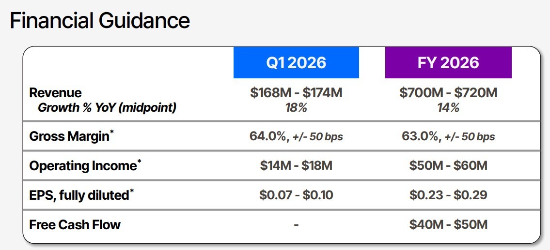 2026년 전체에 대해서는 매출 7억~7억2000만 달러(연간 14% 성장), 총 마진 약 63%(±50bp), 영업 이익 5000만~6000만 달러를 목표로 제시했다. 이러한 전망은 애널리스트들의 예상을 약 6% 상회하는 수준으로, 경영진의 자신감을 드러낸다.