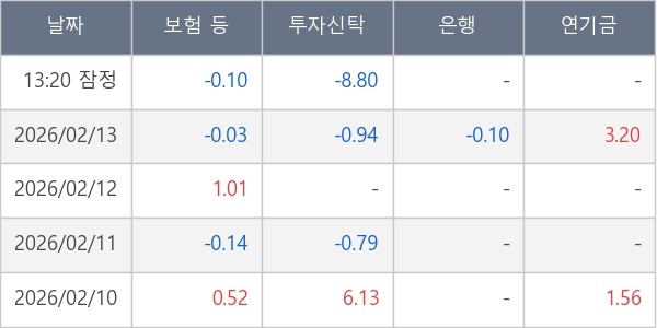 [표] 주요 기관별 순매매량 (단위 만주)