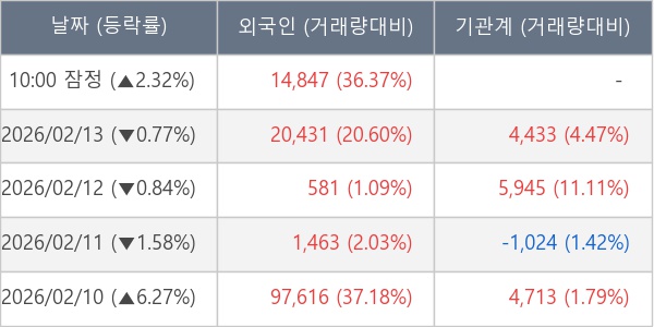 [표] 외국인ㆍ기관 순매매량 (단위 주)
