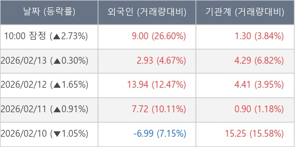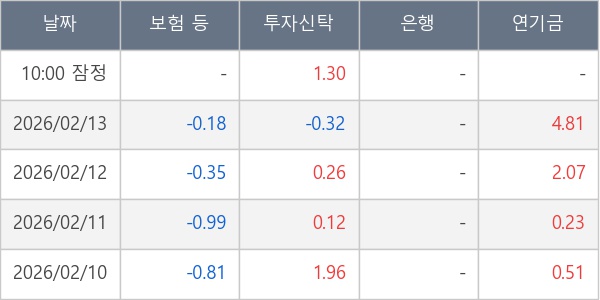 [표] 주요 기관별 순매매량 (단위 만주)