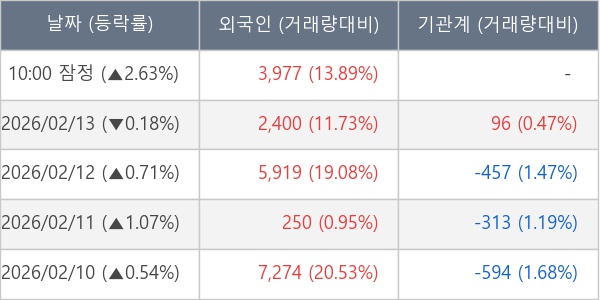 [표] 외국인ㆍ기관 순매매량 (단위 주)