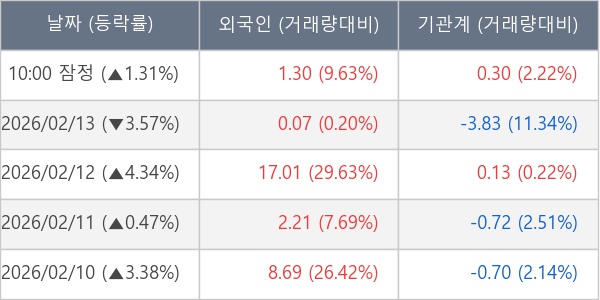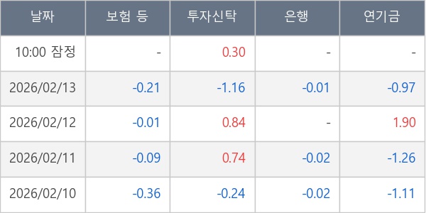 [표] 주요 기관별 순매매량 (단위 만주)