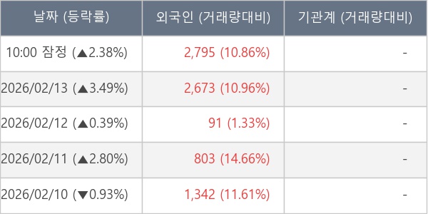 [표] 외국인ㆍ기관 순매매량 (단위 주)