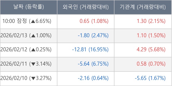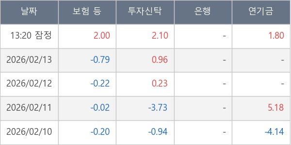[표] 주요 기관별 순매매량 (단위 만주)