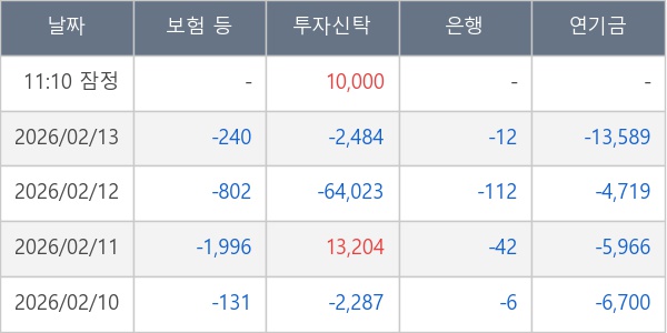 ※ 사모펀드 등 일부 기관의 순매매량은 표시되지 않음