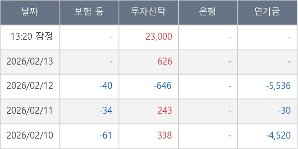 [표] 주요 기관별 순매매량 (단위 주)