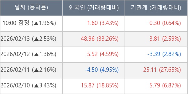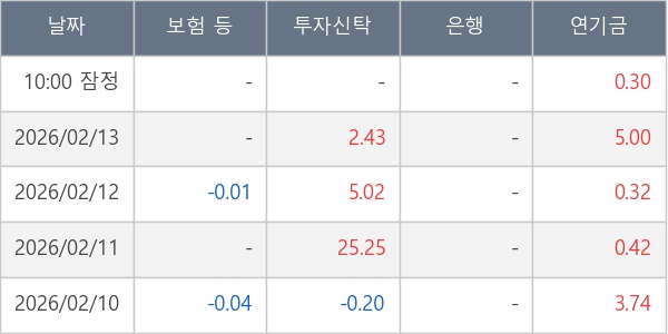 [표] 주요 기관별 순매매량 (단위 만주)