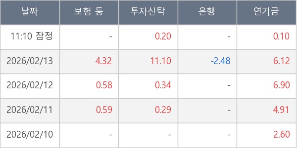 [표] 주요 기관별 순매매량 (단위 만주)