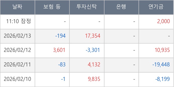 [표] 주요 기관별 순매매량 (단위 주)