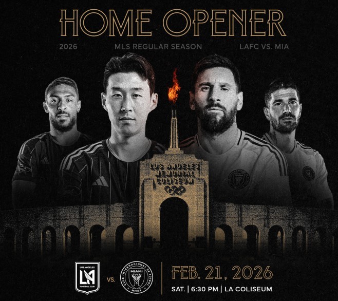 [서울=뉴스핌] 박상욱 기자 = 축구팬이 기다리던 '손-메 대전'이 사흘 앞으로 다가왔다. 손흥민이 이끄는 LAFC는 22일 오전 11시 30분(한국시간) 미국 로스앤젤레스 LA 메모리얼 콜리세움에서 리오넬 메시가 버틴 인터 마이애미와 미국 프로축구 메이저리그 사커(MLS) 2026시즌 개막전을 치른다. MLS 사무국이 시즌 첫 카드로 꺼낸 빅매치다. LAFC 홈구장인 2만2000석 규모 BMO 스타디움 대신 7만7000석 콜리세움을 택한 이유다.