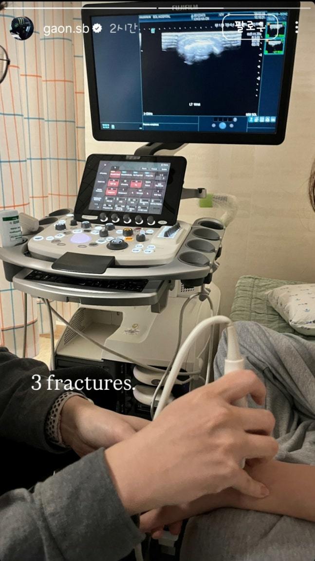 [서울=뉴스핌] 이웅희 기자= 한국에 첫 금메달을 안긴 최가온(18·세화여고)이 병원 검진 사진을 올렸다. '3 fractures'라는 표현으로 보아 세 곳에 골절상을 입은 것으로 보인다.