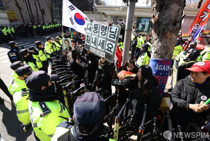 서울중앙지법 앞에 모인 윤석열 지지자들