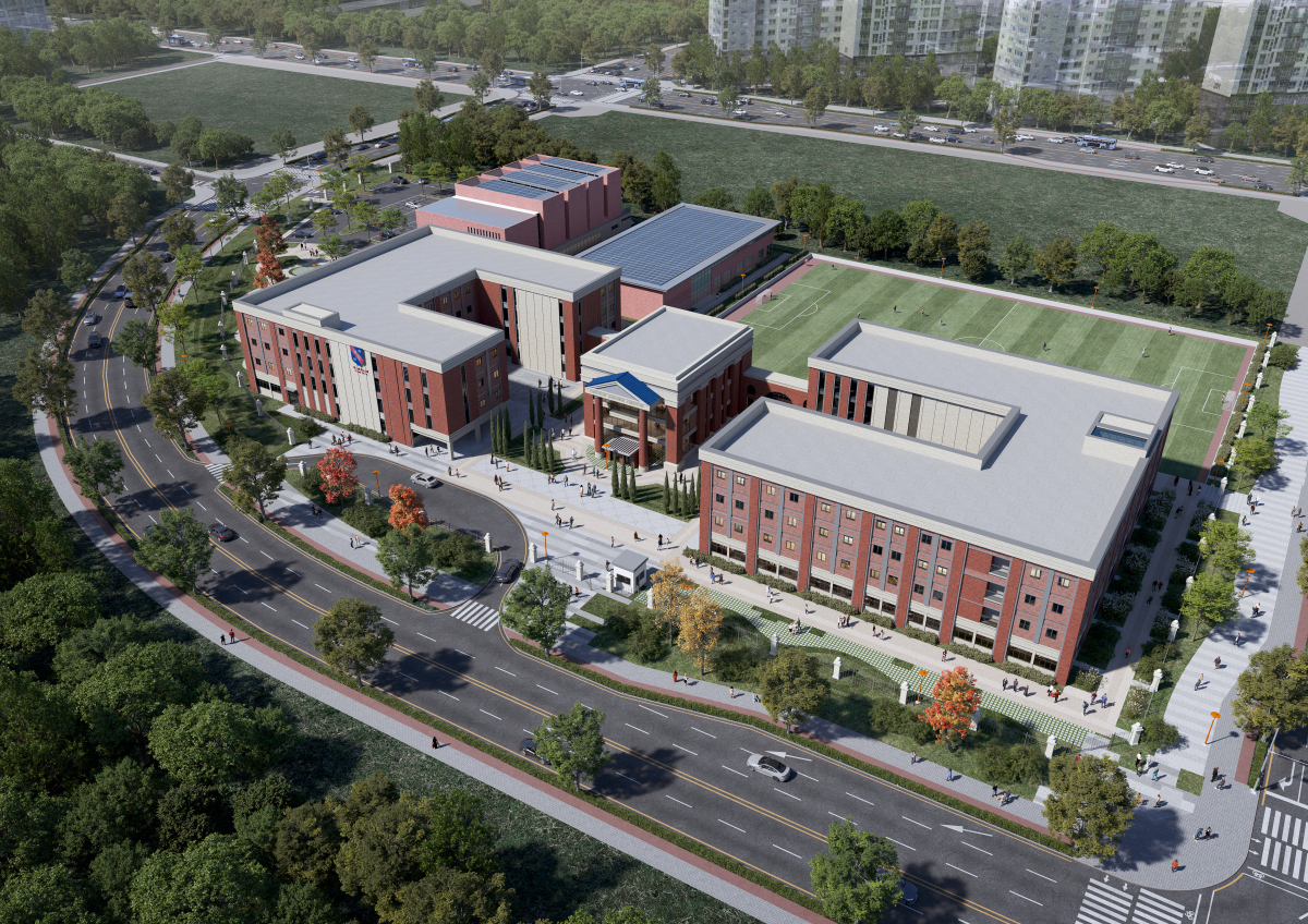 경자청은 교육청, 소방서, 경찰청 등 30여 개 기관과 협력해 인·허가 절차를 병행 추진함으로써 처리 기간을 단축하고, 기술적 검토를 통해 국내법과 국제 교육기준을 조화시켰다. 캠퍼스는 지하 1층·지상 4층, 6개동 규모에 수영장과 강당 등 교육·체육시설을 갖춘다.