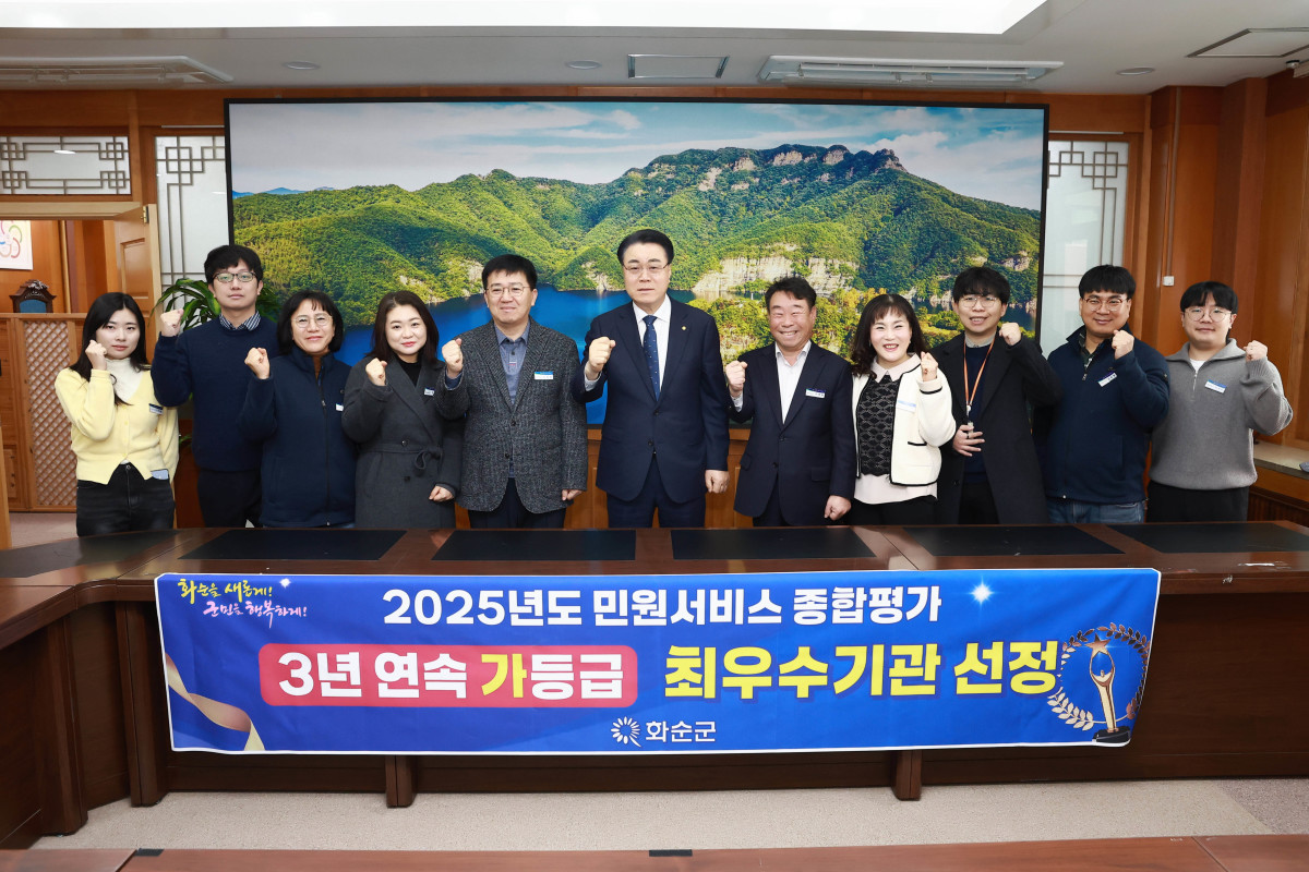 [화순=뉴스핌] 조은정 기자 = 전남 화순군은 19일 행정안전부와 국민권익위원회가 공동으로 실시한 '2025년 민원서비스 종합평가'에서 최우수 등급인 '가' 등급을 받아 3년 연속 최우수기관에 선정됐다고 밝혔다.