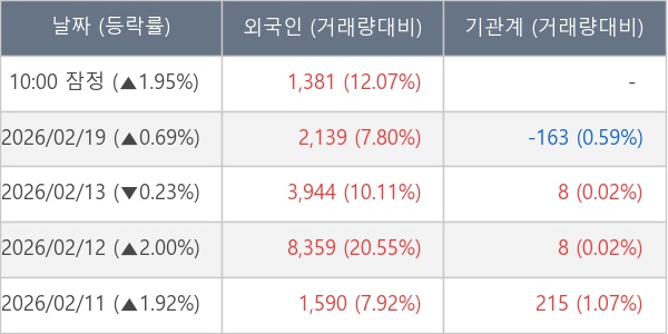 [표] 외국인ㆍ기관 순매매량 (단위 주)