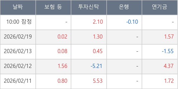 [표] 주요 기관별 순매매량 (단위 만주)