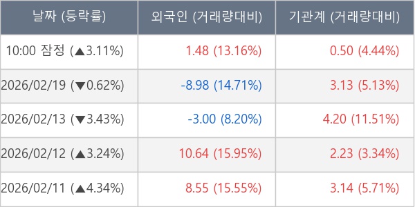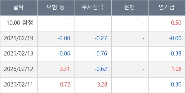 [표] 주요 기관별 순매매량 (단위 만주)