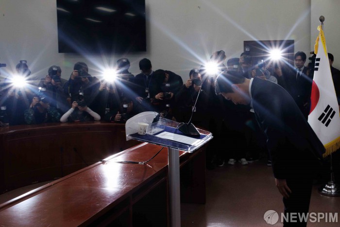 [서울=뉴스핌] 윤창빈 기자 = 장동혁 국민의힘 대표가 20일 오전 서울 여의도 국회에서 현안 관련 기자회견을 마치고 인사하고 있다. 2026.02.20 pangbin@newspim.com