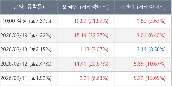 [표] 주요 기관별 순매매량 (단위 만주)