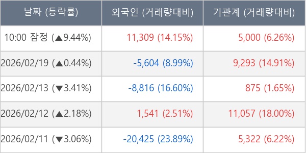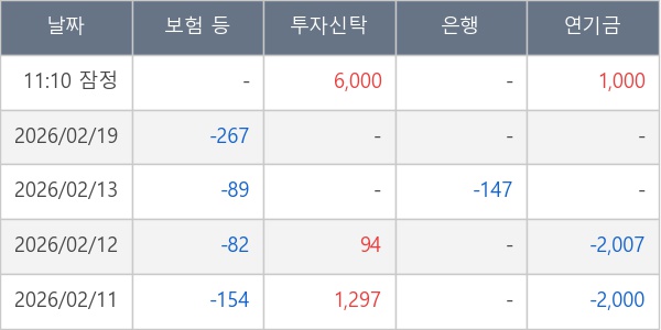 [표] 주요 기관별 순매매량 (단위 주)