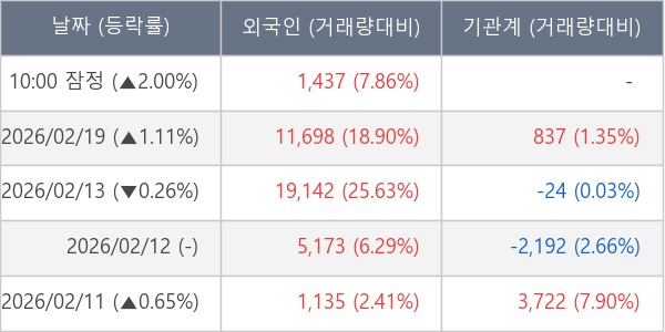 [표] 외국인ㆍ기관 순매매량 (단위 주)