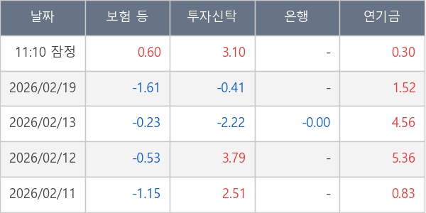 [표] 주요 기관별 순매매량 (단위 만주)