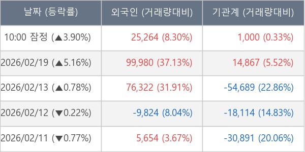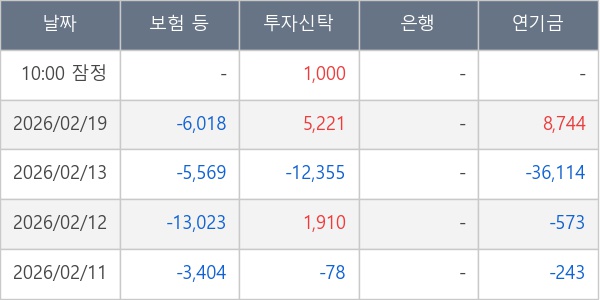 [표] 주요 기관별 순매매량 (단위 주)