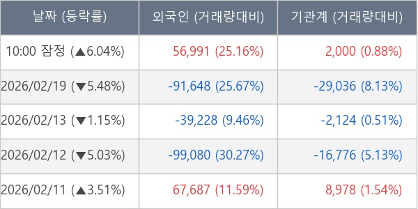 [표] 외국인ㆍ기관 순매매량 (단위 주)