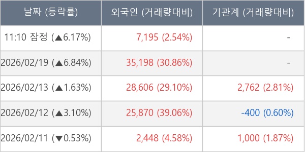 [표] 외국인ㆍ기관 순매매량 (단위 주)