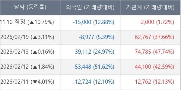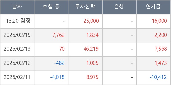 [표] 주요 기관별 순매매량 (단위 주)