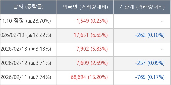 [표] 외국인ㆍ기관 순매매량 (단위 주)