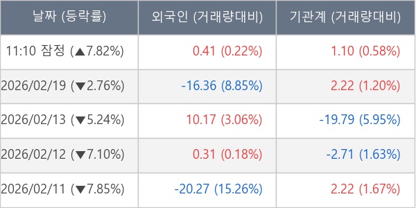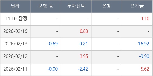 [표] 주요 기관별 순매매량 (단위 만주)