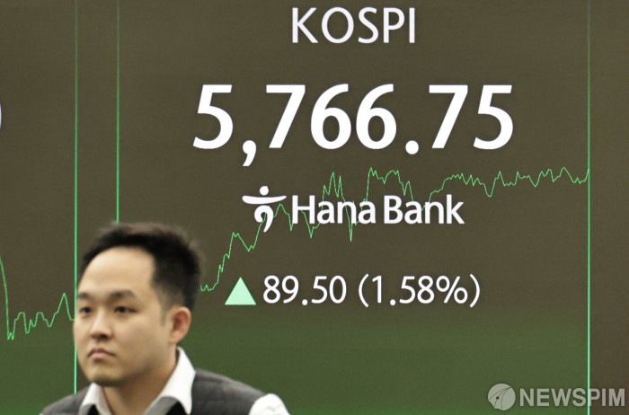 [서울=뉴스핌] 양윤모 기자= 20일 오후 코스피가 전장 종가보다 89.50 포인트(1.58%) 상승하며 5766.75로, 코스닥은 4.79포인트(0.41%) 하락한 1155.92로 거래되는 가운데, 서울 중구 하나은행본점 딜링룸에서 직원들이 업무를 보고 있다. 서울외환시장에서 달러/원 환율은 전장 대비 3.90원 상승한 1449.40원에 거래되고 있다. 2026.02.20 yym58@newspim.com