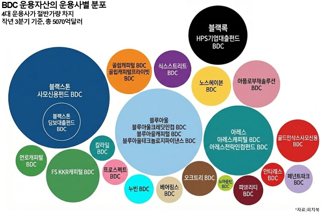 블루아울이 환매 중단을 발표한 것은 'OBDC II'로 불리는 비상장 BDC(사업개발회사) 형태의 개인투자자 대상 사모대출 펀드다. BDC는 은행이 대출하기 꺼리는 중소기업에 직접 대출을 내주는 펀드로, 상장과 비상장 두 형태가 있다.
