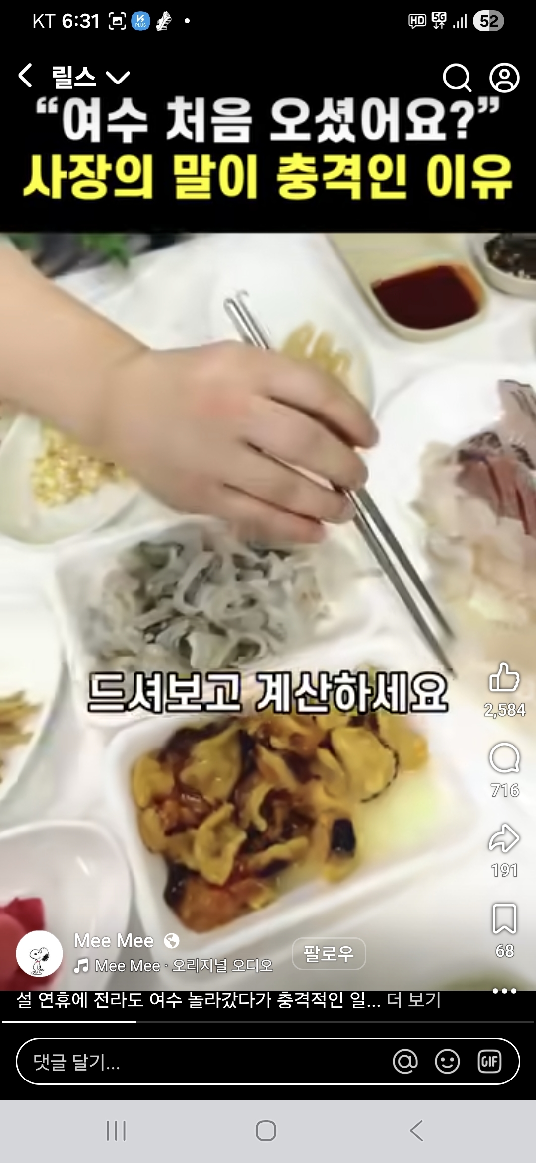 최근 페이스북 등에는 "여수 처음 오셨어요?"라는 제목의 영상이 게시돼 수십만 회 조회 수를 기록하며 확산됐다. 영상에는 설 연휴 여수 해산물 포장마차에서 모둠 해산물과 소주 2병을 주문했다가 28만 원을 결제했고, 평소 7만 원 수준이라는 숙박비가 연휴를 이유로 25만 원으로 올랐다는 내용이 담겼다. 댓글에는 "여수는 이제 안 간다"는 반응과 함께 지역을 비하하는 표현까지 이어지며 여수 전역이 '바가지 도시'라는 인식이 번졌다.