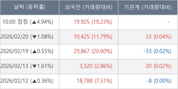 [표] 외국인ㆍ기관 순매매량 (단위 주)