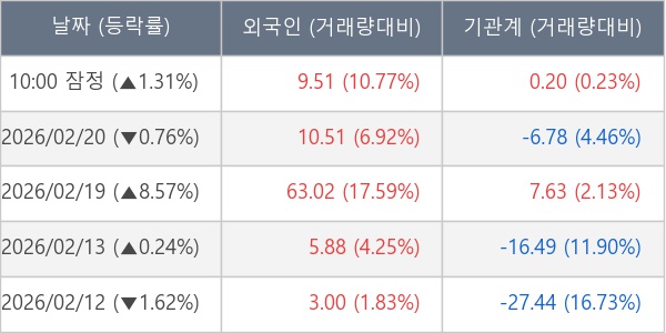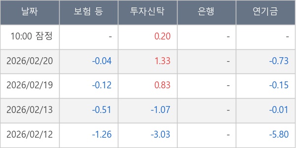 [표] 주요 기관별 순매매량 (단위 만주)