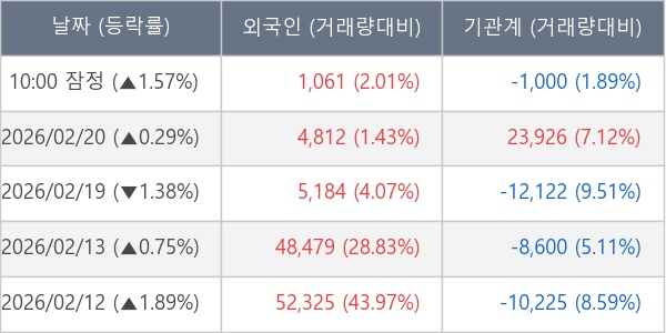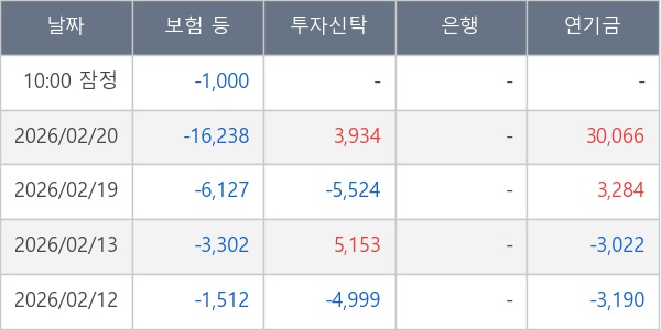 [표] 주요 기관별 순매매량 (단위 주)