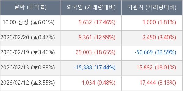 [표] 외국인ㆍ기관 순매매량 (단위 주)