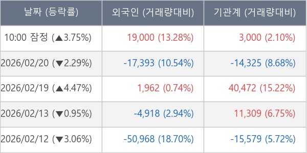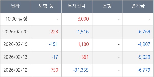 [표] 주요 기관별 순매매량 (단위 주)