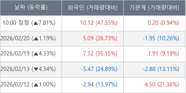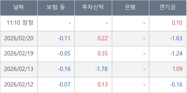 [표] 주요 기관별 순매매량 (단위 만주)