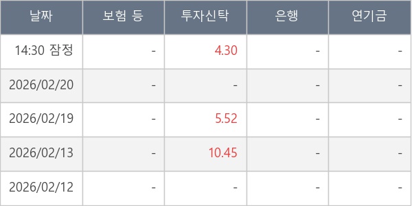[표] 주요 기관별 순매매량 (단위 만주)